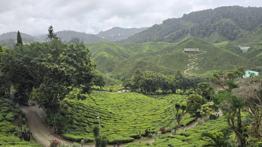 The higher we climbed, the cooler it became. I could almost feel the temperature dropping with each switchback. Kuala Lumpur had been rainy, hot, and humid, hovering near 90 degrees. By the time we reached the highlands, the air felt fresh, almost crisp. The humidity softened, the light shifted, and a mist clung to the trees, giving the landscape a slightly mysterious cast.